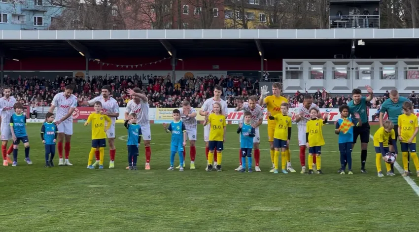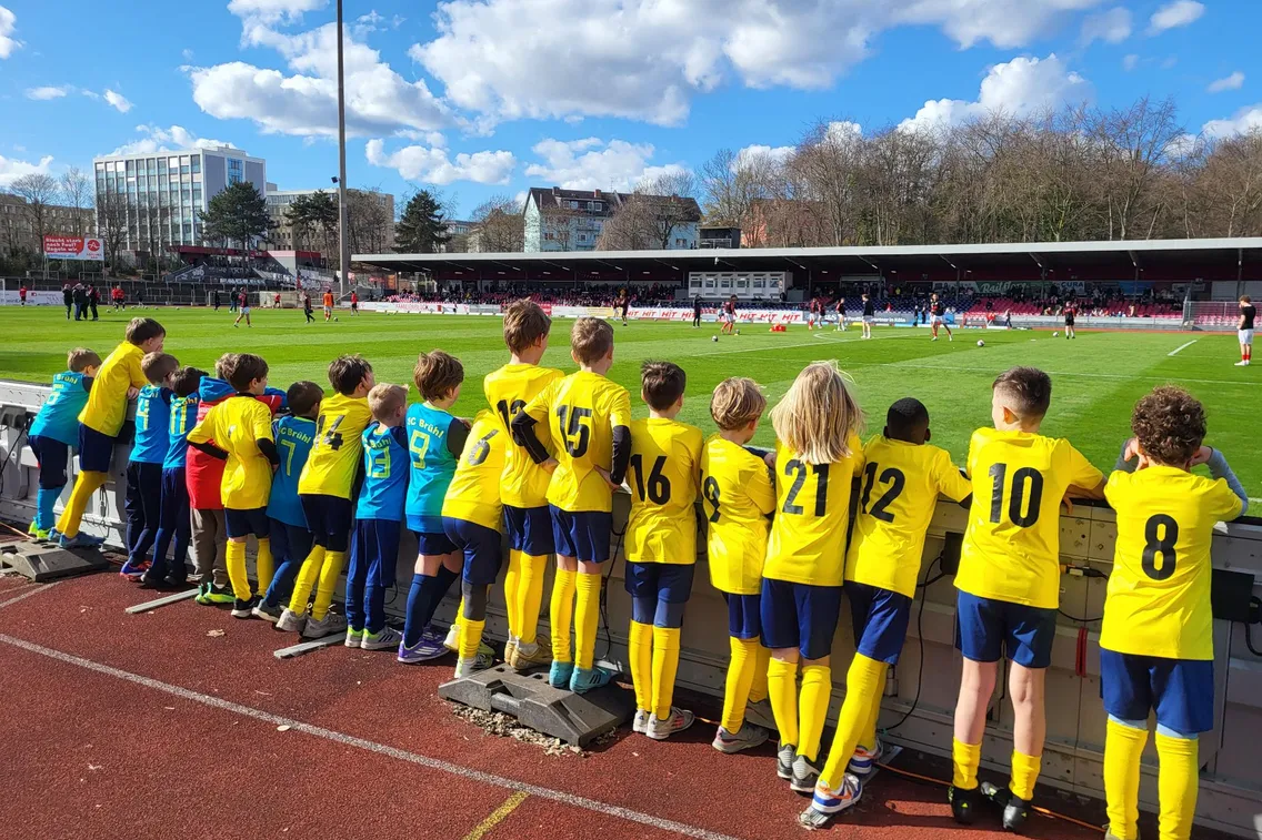 Schon beim Betreten des Innenraums war die Begeisterung riesig. Der Blick auf die gut gefüllten Tribünen, das Hören der melancholischen Vereinshymne, der Duft der Stadionwurst – für viele Kinder war es der erste Stadionbesuch dieser Art. Stolz begleiteten sie die Spieler beider Mannschaften auf das Feld und genossen den Moment sichtlich. Für die jungen Fußballer ein Augenblick, den sie so schnell nicht vergessen werden.